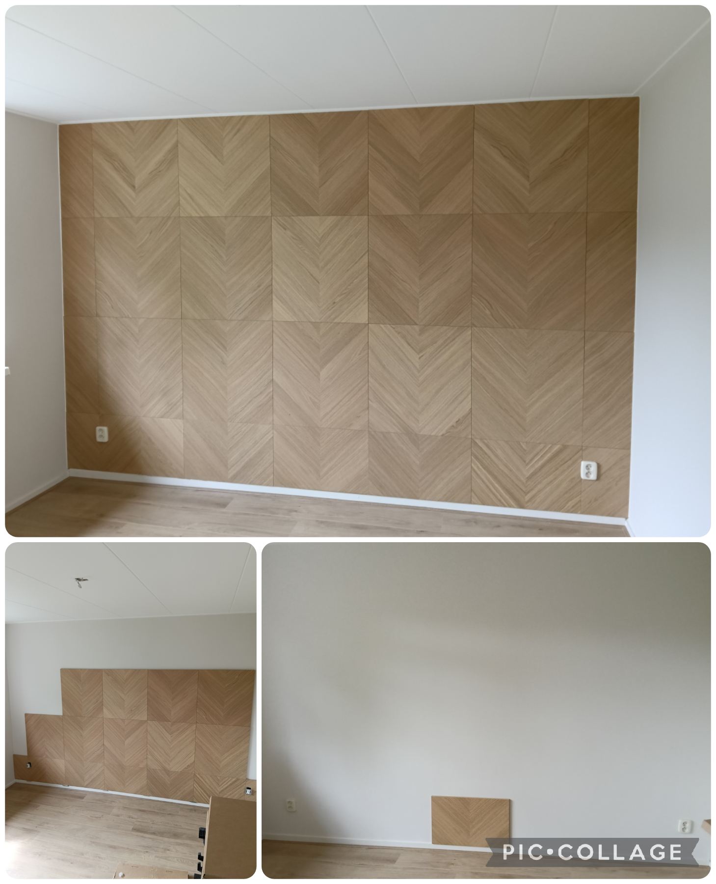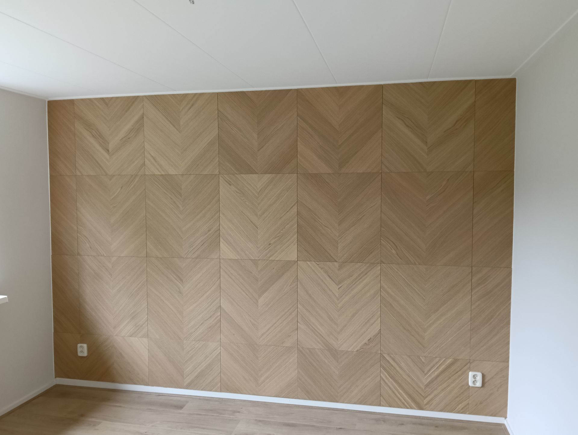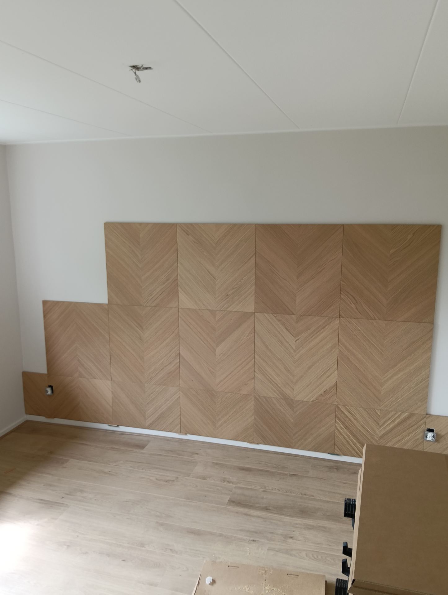 Naast het aanbrengen van bijzondere lampen en legplanken mocht er ook een muur bekleed worden met "kastdeurpanelen"